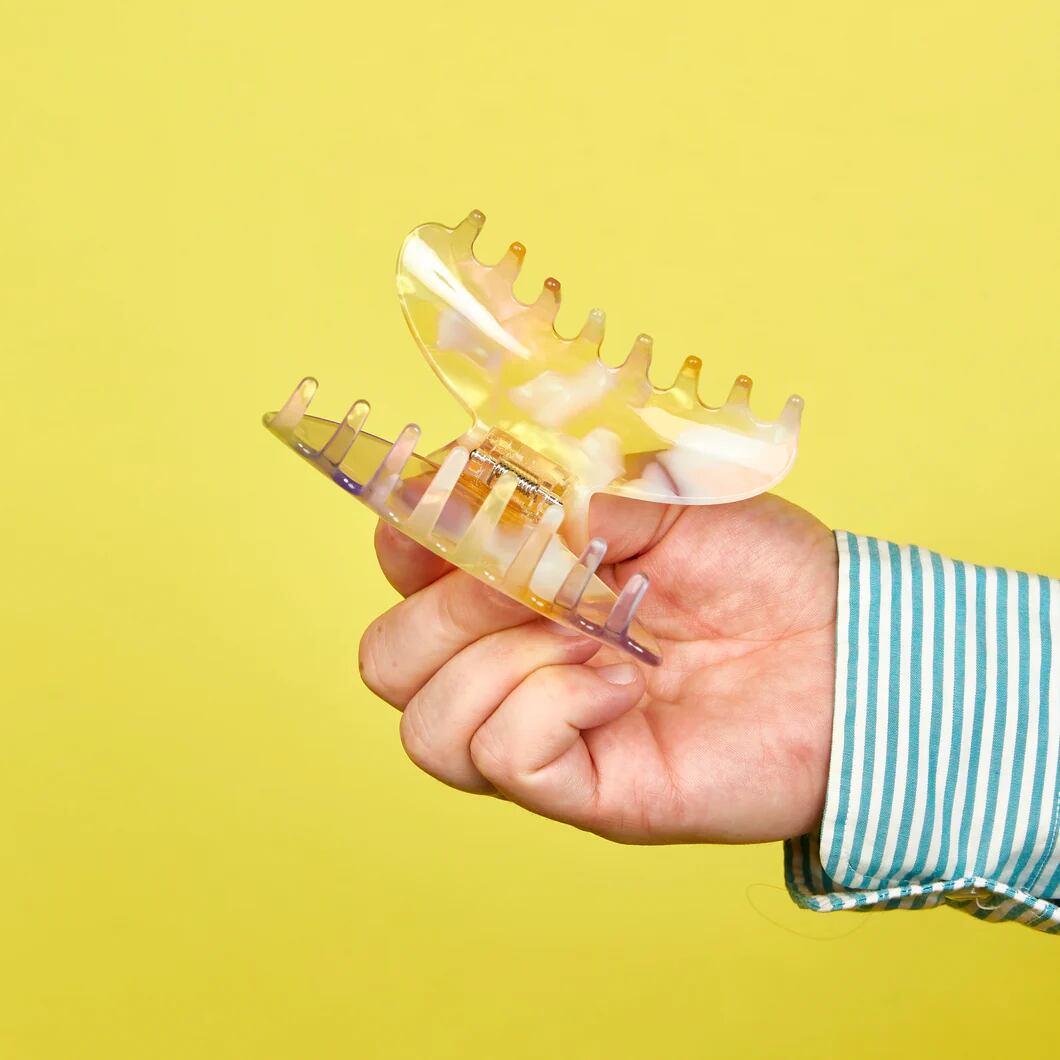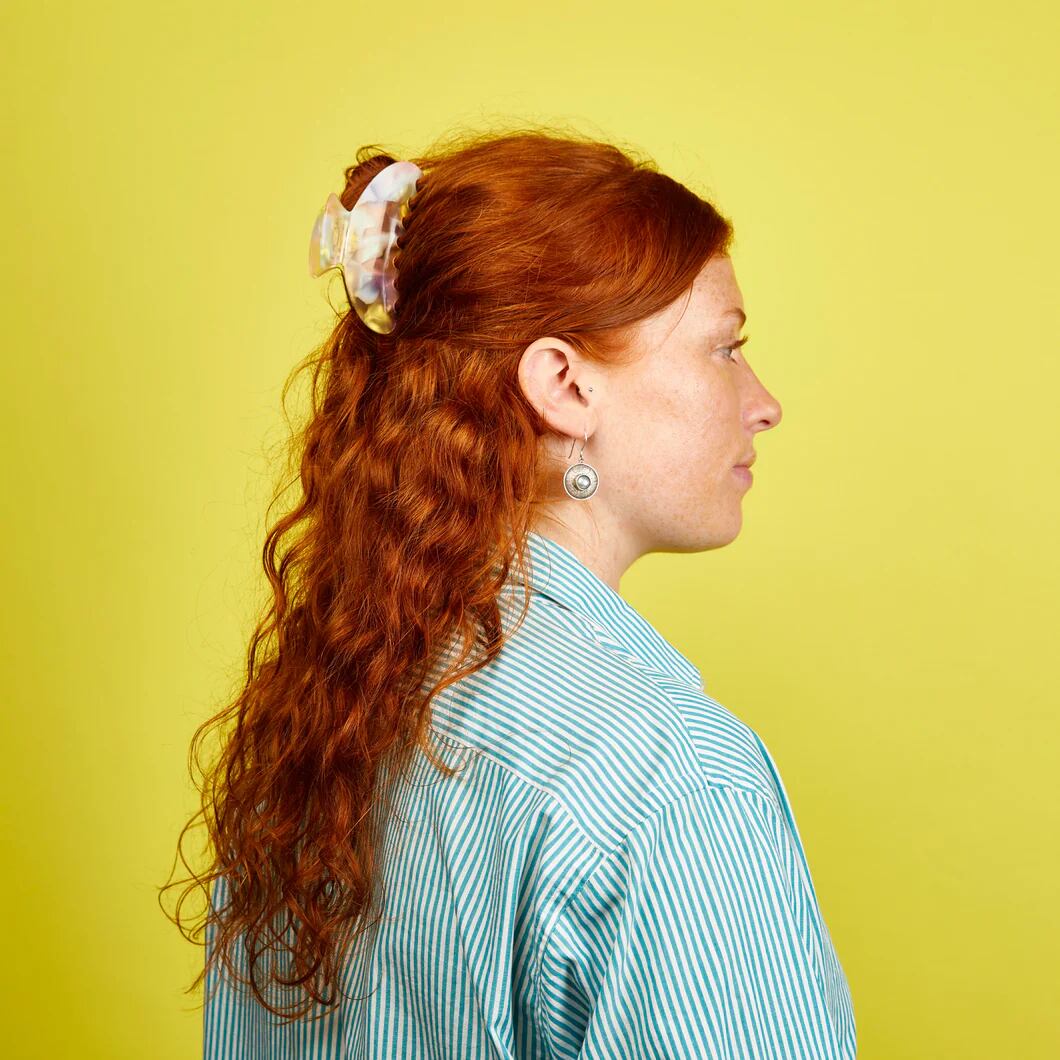 万能なミディアムサイズのヘアクリップ。髪質を選ばず幅広くお使いいただけます。